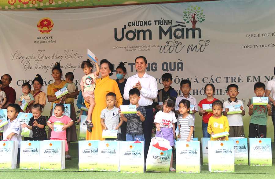Hưởng ứng ngày Quốc tế Thiếu nhi 1/6, Tạp chí Tổ chức nhà nước và Lao động phối hợp với Tạp chí Người bảo trợ và Công ty Cổ phần Phát triển Truyền thông Văn hóa Việt Nam cùng các cơ quan liên quan tổ chức Chương trình Giao lưu - Nghệ thuật “Ươm mầm ước mơ”, tiếp tục hành trình lan tỏa yêu thương, mang những phần quà ý nghĩa đến với các em nhỏ vùng cao. Năm nay, Ban Tổ chức cùng các nhà tài trợ đã lựa chọn Trường THCS Núa Ngam (huyện Điện Biên, tỉnh Điện Biên) làm điểm dừng chân, trao tặng quà cho các em học sinh khuyết tật, mồ côi và những em có hoàn cảnh đặc biệt khó khăn nhưng luôn nỗ lực vươn lên, đạt thành tích tốt trong học tập trên địa bàn huyện.